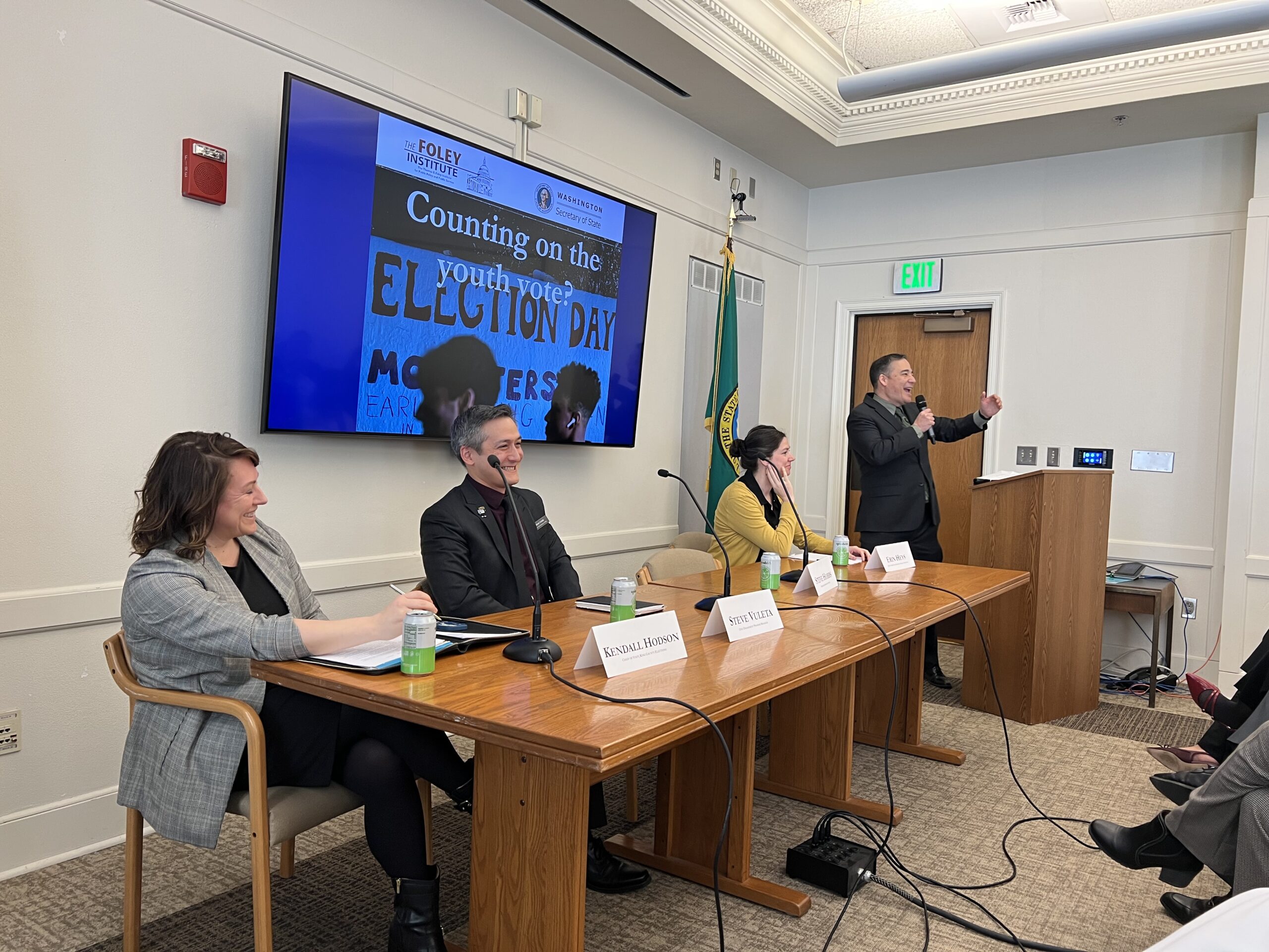 On March 17, the Foley Institute held our annual symposium in collaboration with the Washington Secretary of State’s office in Olympia, Washington. This year’s event focused on youth voting, with Secretary of State Steve Hobbs facilitating a discussion between Erin Heys, UC Berkeley, Steve Vuleta, WA Secretary of State’s Office, and Kendall Hodson, King County Elections Office.